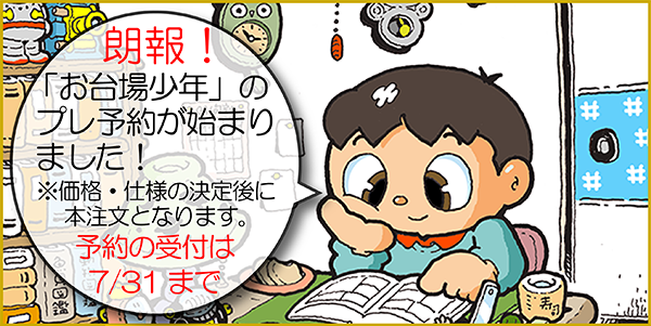 「タモタモの部屋」で、“「お台場少年出版委員会」が発足しました!”と告知されていましたが、出版に向けた準備が進んでいます。次の段階として、発行部数を決めるためにある程度注文数を把握する必要があるため、このプレ予約サイトをオープンしました。